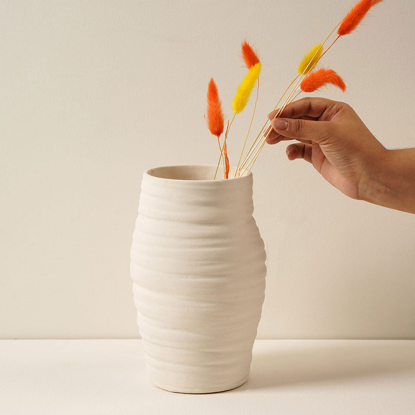 Plastic Flower Vases for Home Decor, Bedroom, Centrepiece Living Room, Office Decoration (White)