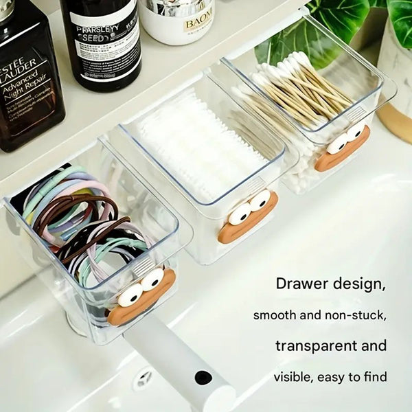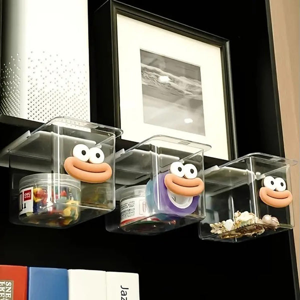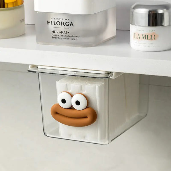 Add a touch of fun and functionality to your space with the Cartoon Cute Wall-Mounted Storage Box. Made from durable, transparent PP plastic, this storage box features a dust-proof design with a secure lid, ensuring your items stay clean and protected. Its adorable cartoon face adds charm, making it a perfect addition to any bathroom or kitchen.Easily attachable with double-sided tape, it requires no drilling or tools, ensuring a hassle-free installation on walls, shelves, or other smooth surfaces. Ideal for storing tissues, small items, or accessories, this compact box combines practicality with playful design to keep your space organized and stylish.