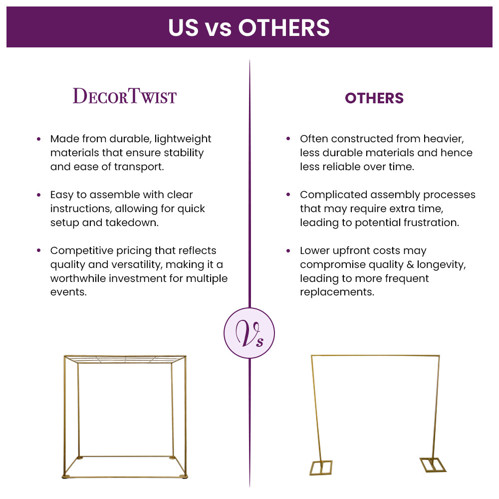 - Premium Material for Long-Lasting Use: Square Mandap Backdrop Stand is crafted from high-quality metal with a sleek gold finish, ensuring durability and an elegant appearance. Its sturdy frame is designed to support various decorations, making it a dependable choice for any event. Unlike flimsy alternatives, this stand offers excellent stability, giving you confidence in your décor needs.