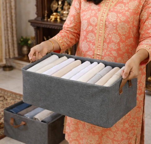 Lightweight and foldable, the box is easy to assemble and can be folded flat when not in use, making it convenient for seasonal storage, shifting, or travel. Its versatile multi-purpose design makes it ideal for organizing shoes, clothing, toys, blankets, and other household essentials in bedrooms, wardrobes, or storage areas.