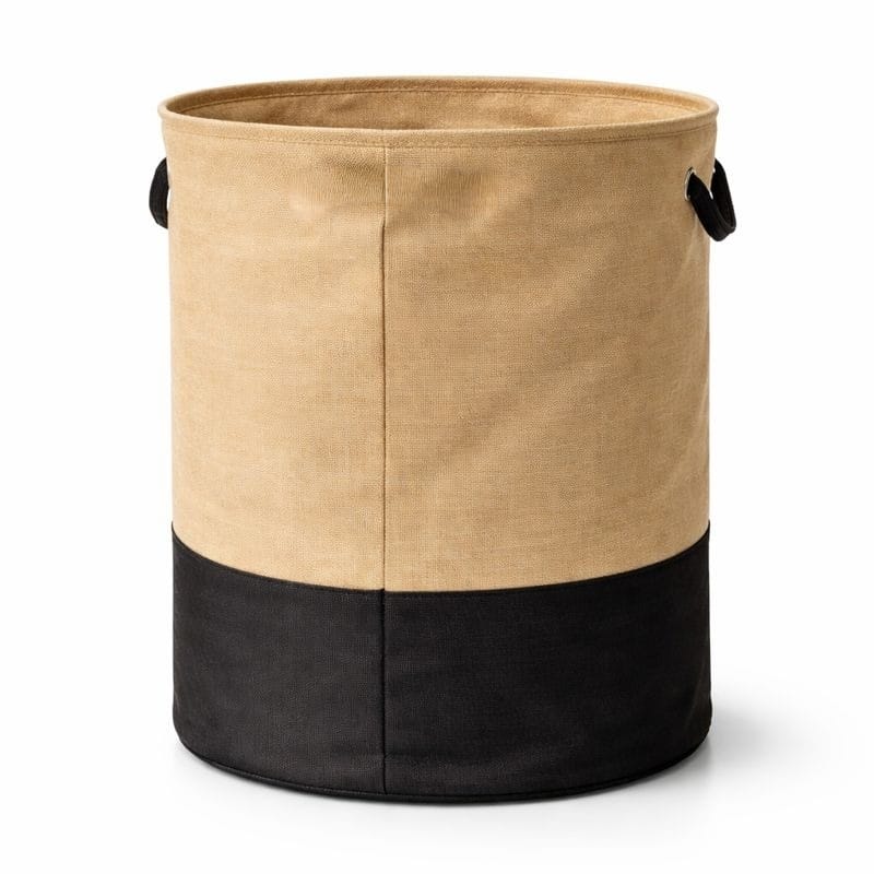 Jute Laundry Basket Large | Collapsible Laundry Hamper with Handles | Stylish Fabric Laundry Storage for Home, Bedroom & Bathroom (Beige + Black | “THE LAUNDRY BAG”)