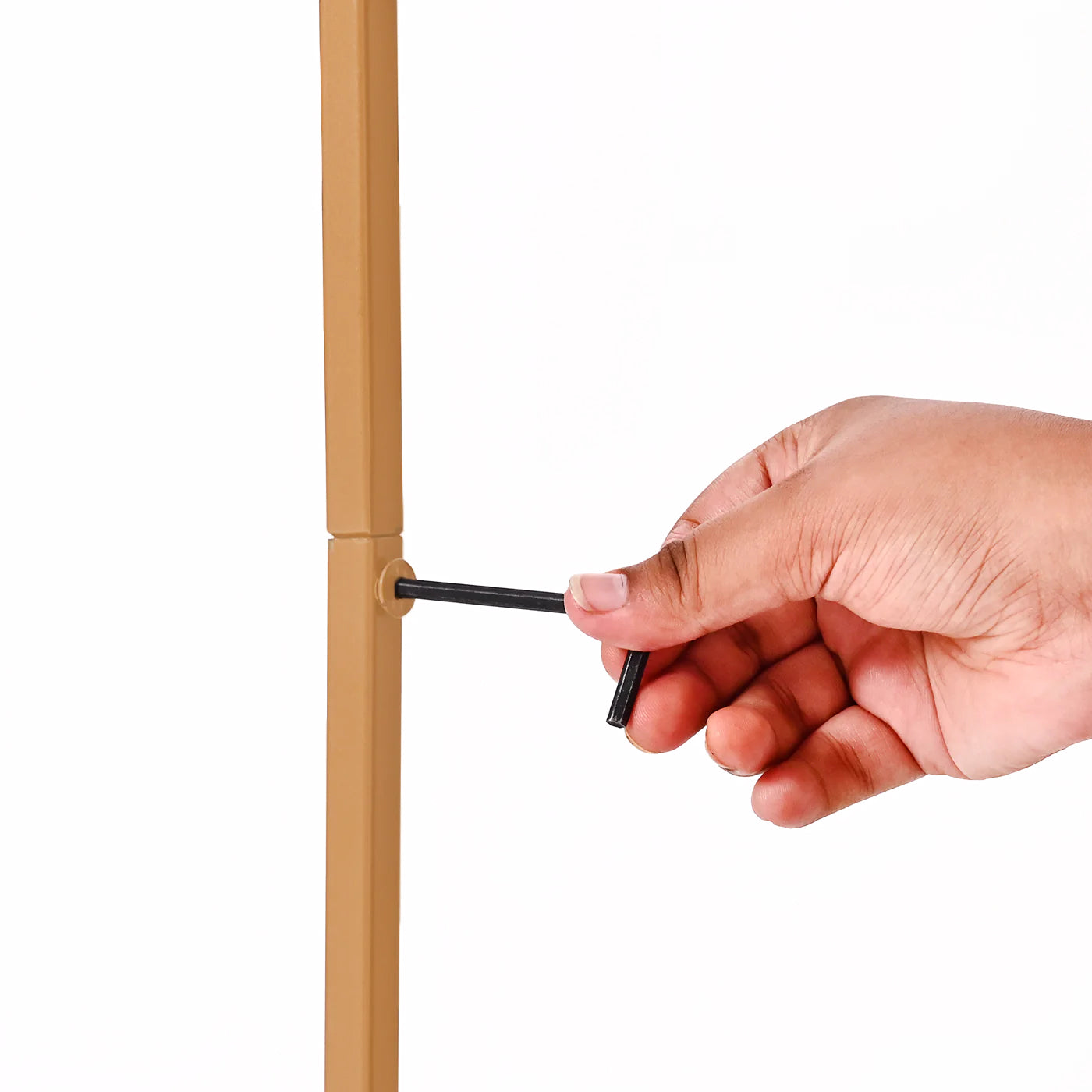 Introducing our Curve Backdrop, a captivating addition to your decor! This exquisite piece boasts a Width of 18.5 inches and stands at a height of 47 inches (easily dismantlable), bringing an aura of elegance in a dazzling Gold hue.